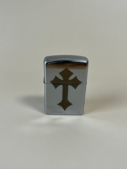 Chrome Cross Heart Engraved Lighter Case - Flip Oil Vintage Style Lighter