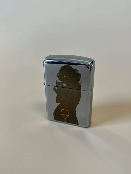 Cat Mom Lighter Case - Engraved Steel Flip Oil Lighter "Cat Lady” Edition