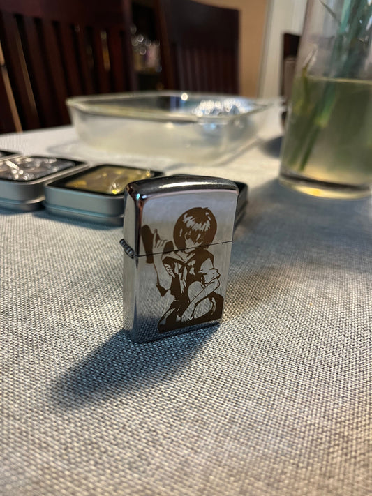 Anime Girl Engraved Steel Lighter Case - Vintage Style Y2K Lighter Case