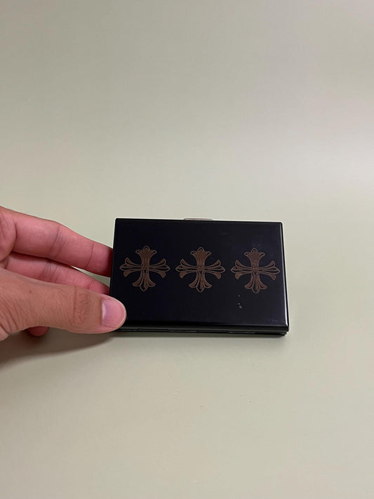 Chrome Hearted Steel Cardholder, Engraved Crosses Metal Wallet