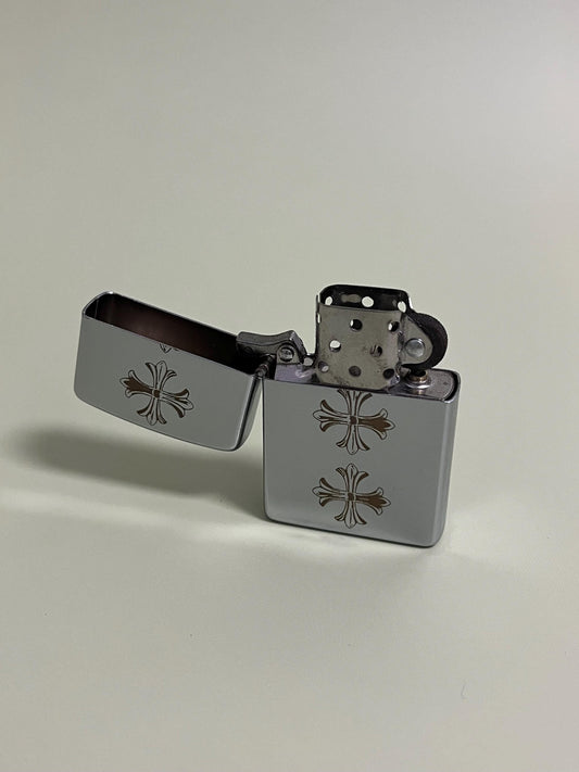 Chrome Heart Engraved Steel Lighter - Vintage Style Flip Oil Lighter