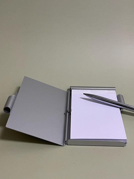 Chrome Cross Heart Engraved Pocket Notebook - Aluminum Vintage Style Pocket Book & Pen
