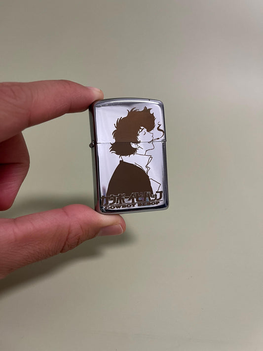 Cowboy Bebop Spike - Engraved Steel Flip Oil Lighter - Spike Bounty Hunter Vintage Style Lighter