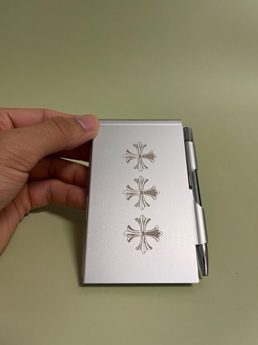 Chrome Hearted Pocketbook Vintage Style, Engraved Crosses Aluminum Case Pocket Notebook